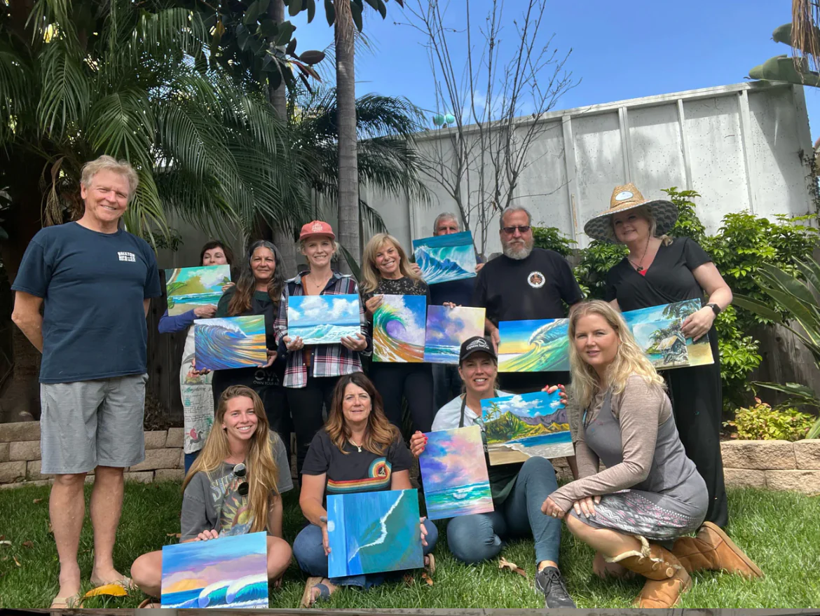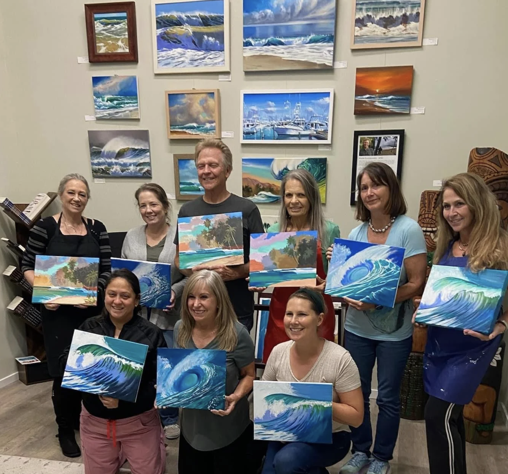 Day 1  – FUNDAMENTALS OF WAVE PAINTING. We will cover how waves work (a bit of science) 2.) What elements make a great wave painting 3.) how to render each of those elements. 4.) How those elements apply to a myriad of wave compositions. All this will be covered AS WE PAINT- Learn as you do!